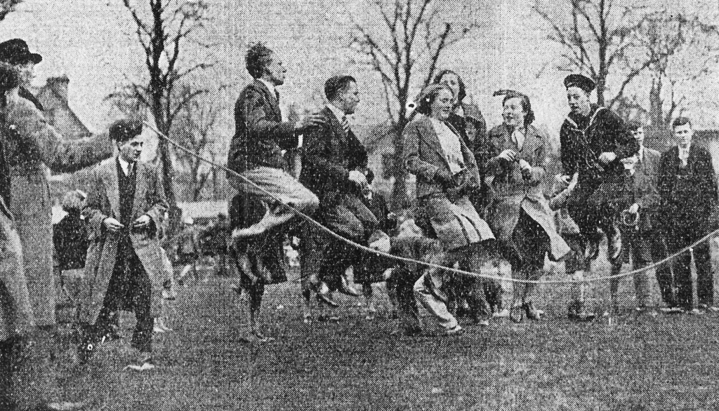 Traditional Good Friday skipping on Parkers Piece from the Cambridge Daily News on 27 March 1937. Reproduced with kind permission of the Museum of Cambridge.